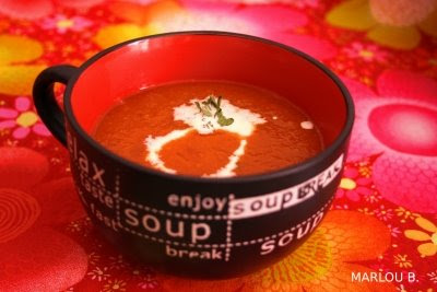 Manger pendant un jour que de la nourriture de couleur rouge? Pourquoi pas ?C'est drôle, c'est bon et en plus plein de vitamines. Le jus de tomates, soupe de tomates, des fruits rouges... je crois que je vais me régaler aujourd'hui.